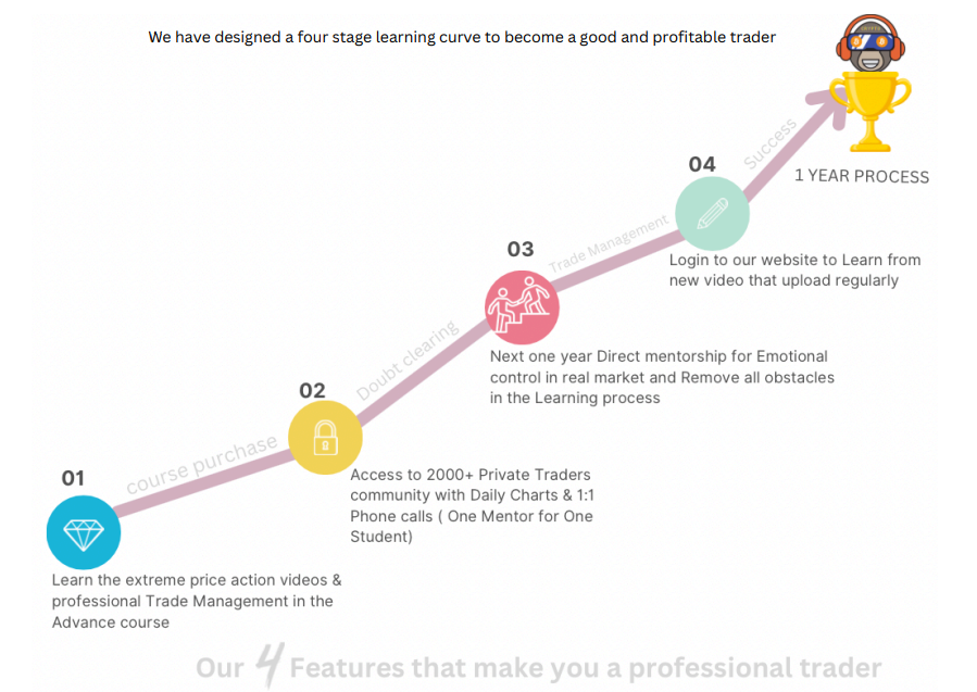 Every paid courses include with 1:1 phone call mentoring and Access to 2000+ vip Traders community